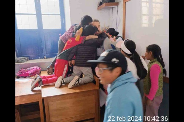 The best part of the day? The “Andean Hug.” These kids might be the best huggers in the world. As soon as a lesson ended, they would climb right onto the wooden tables just to reach the teachers for a giant group hug.